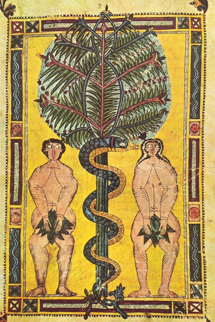 Illustration: le Jardin d'Eden. Enluminure du Beatus de l'Escorial (10ème siècle)