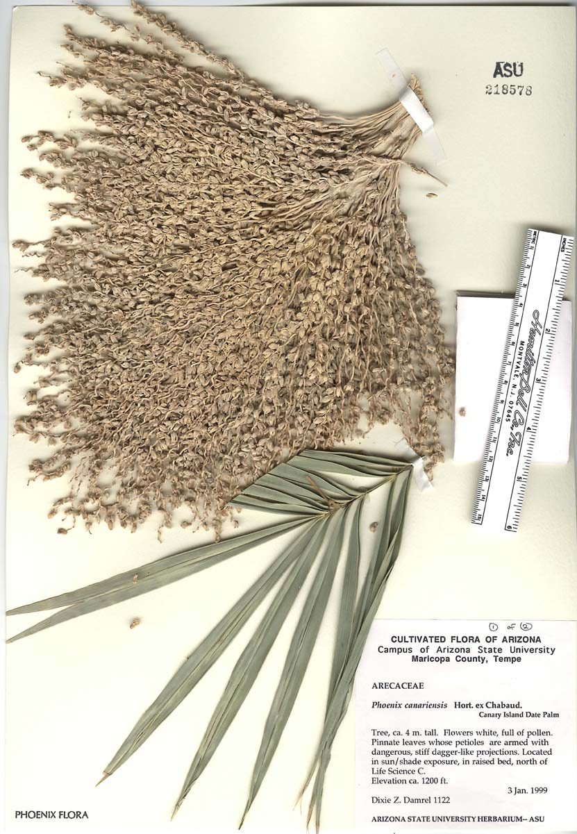 Dans son habitat naturel, Phoenix canariensis a donné naissance à un artisanat varié qui va de la vannerie et du tressage à des productions vivrières, dont le vin de palmier, et le miel de palme, dénommé guarapo. Les études ethnobotaniques les concernant sont récentes. Dans les palmeraies ornementales, ce palmier a aussi été utilisé (plus récemment) à divers usages allant de la floriculture à des rituels religieux.