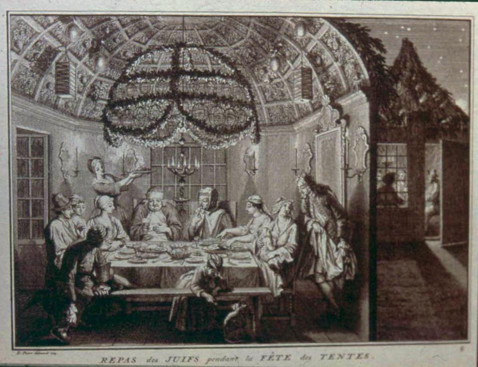 Illustration: Picart Bernard Antoine Auguste. Repas de Juifs pendant la Fête des Tentes. Bruzen de La Martinière – 1721.